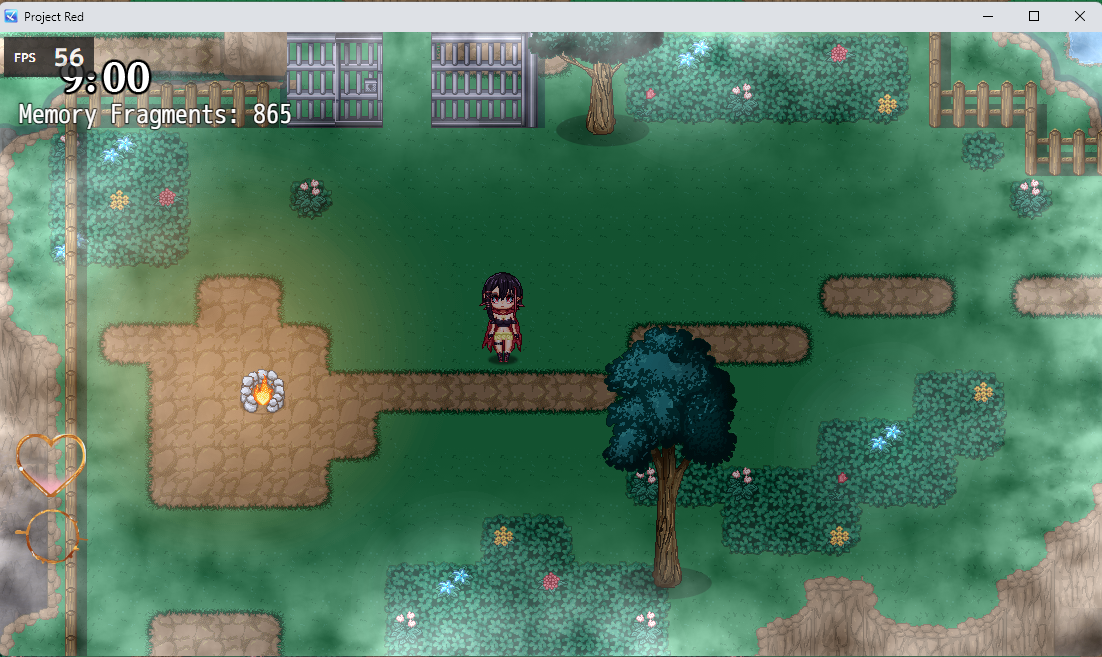9. While I was spamming the campfire next to the witch to see the ran out of time ending I noticed that Red seems to say "Time to get to work" twice. Also, after the dialogue for the ending and before it faded to the black-red Dead End screen, pressing interact again managed to bring up the interact choices for the campfire.