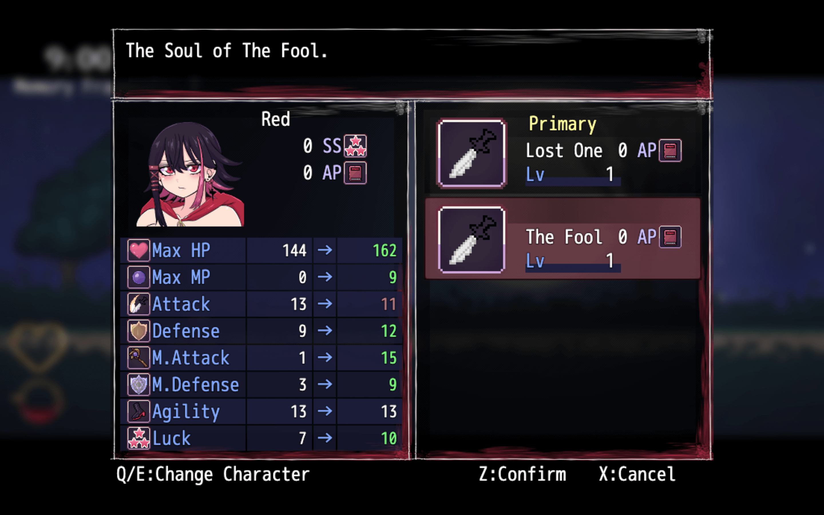 Next up as this is majorly a combat showcase, this build includes the new Soul system. This PT allows you to access both the Fool and the Magician classes to experience different stats, skills and loadouts. Souls alter Red's weaknesses and strengths as well as change up what weapons she can use. There's lots of new ideas to play around with here and this teaser is just scratching the surface of it all.