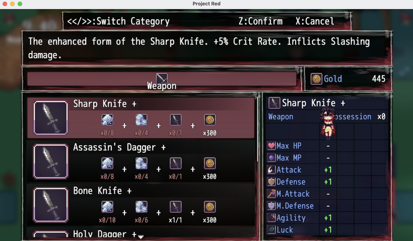 So, when upgrading weapons at the Blacksmith, or trading items with the Alchemist, you'll get this nice little menu rather than the quick and dirty ones of the past. Also yes, upgrading weapons. It works now. You're welcome.
